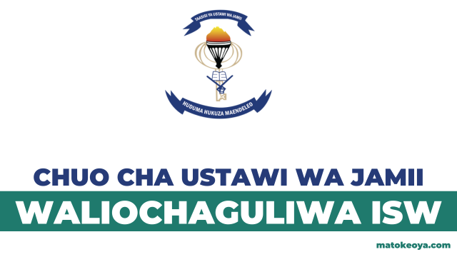 Discover Matokeo ya Waliochaguliwa ISW Selected Applicants 2025-26 OAS. The Institute of Social Work (ISW) warmly congratulates all students who have been selected to join various diploma programmes through the President’s Office – Regional Administration and Local Government (TAMISEMI). This opportunity marks the beginning of your academic journey in one of the most reputable institutions in financial and administrative studies in Tanzania.